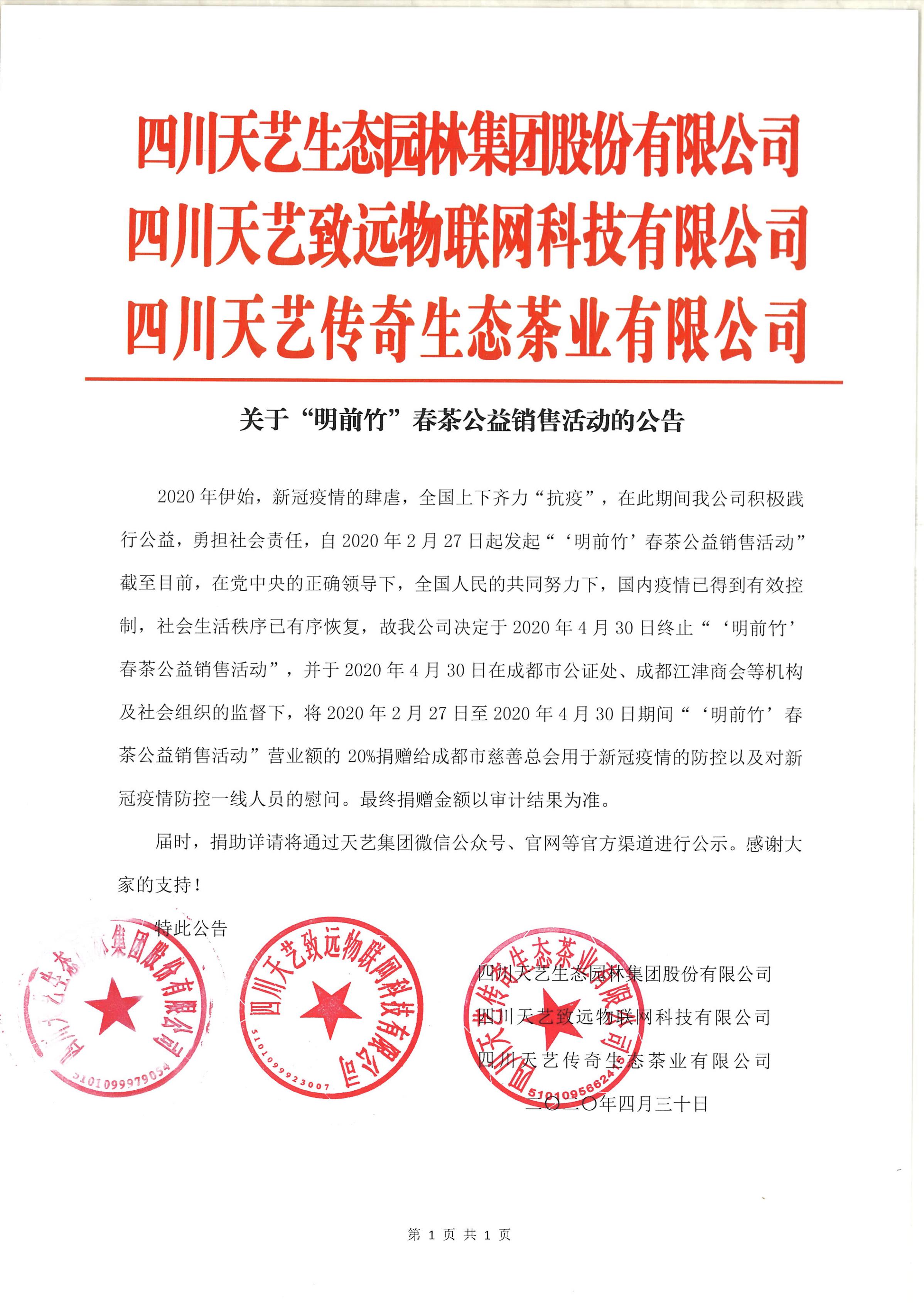 四川天藝生態(tài)園林集團(tuán)股份有限公司于2020年3月23日至2020年3月27日對擬確定黃遠(yuǎn)祥同志為2020年享受政府特殊津貼人員推薦人選事宜進(jìn)行了為期5個工作日的公示,公示期間未收到任何不良反映。經(jīng)研究決定,同意黃遠(yuǎn)祥同志為2020年享受政府特殊津貼人員推薦人選并上報成都市高新區(qū)黨群工作部。